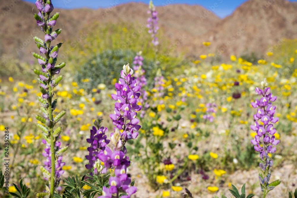 Lupine Flowers Field Of Wildflowers In The Background South Joshua Tree National Park California Stock Photo Adobe Stock